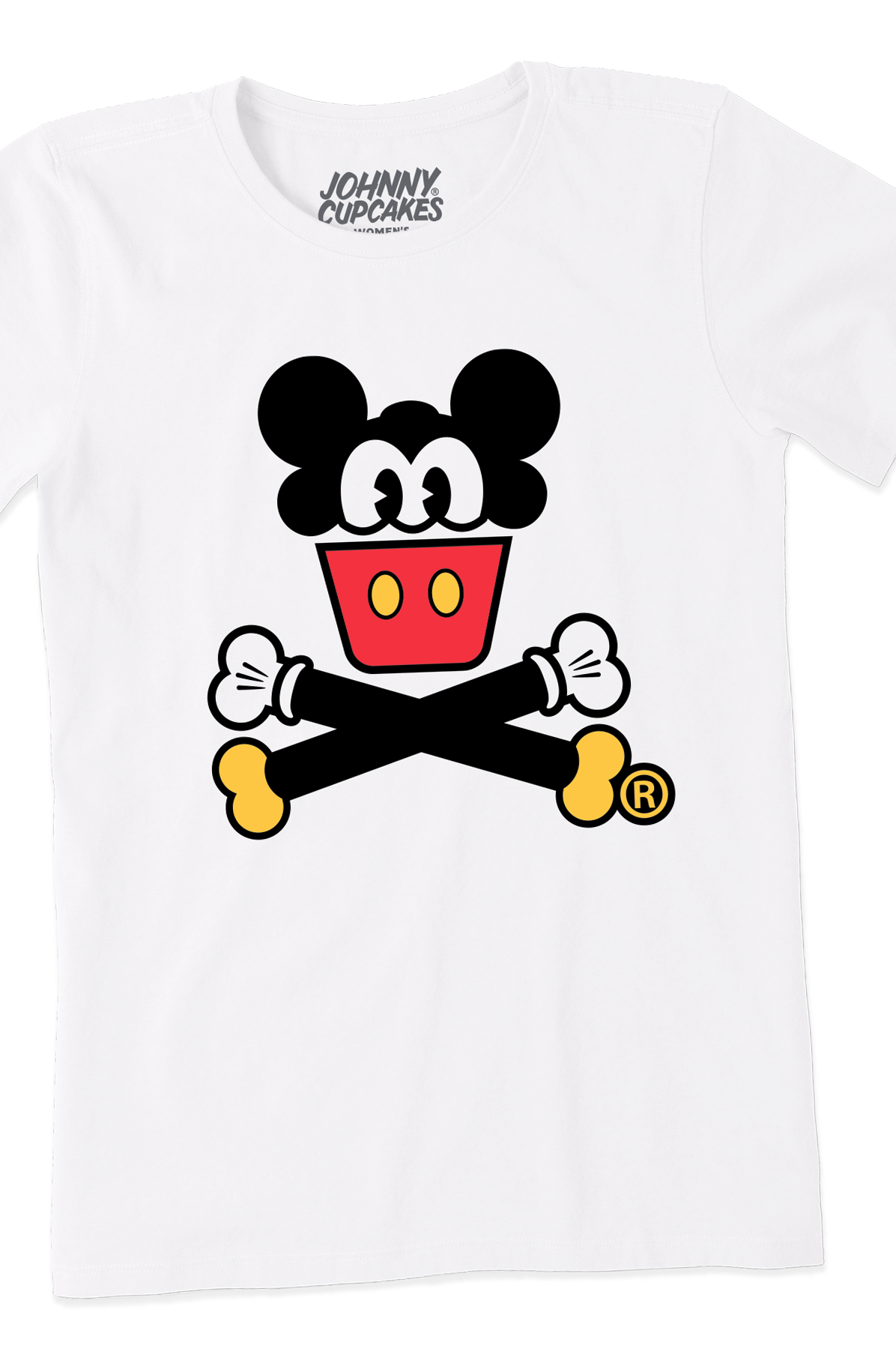 ABOUT THIS DESIGN: A magical parody remix of our Cupcakes and Crossbones logo, tipping our hat to rodents with bows and theme parks. This T-shirt design is just the right ingredients with equal parts nostalgia and equal parts bold graphics. Wear this to cheese shops, the movies, or a theme park! Get matching T-shirts for your whole family!
